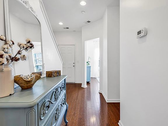 This 2 Bed/2.5 Bath former model townhome boasts many upgrades in addition to several upgrades made within the past year. Engineered hardwood and tile floors throughout. All three bathrooms have beautiful calacatta porcelain tile flooring. Updates also include an in-home audio system with speakers, volume, and audio controls in each room, 9 ft. ceilings, recessed lighting, granite countertops, tile backsplash, raised panel cabinets with crown molding, walk in pantry, and more. On the first level, there is an office that can be used as a formal dining room or an additional bedroom! You will also find a half bath, an open kitchen and living area, a custom pantry, and a screened-in patio on the first floor. Hardwood stairs will take you up to the second floor where you'll find a large primary bedroom with an en suite and large walk-in closet. Down the hall from the primary, there is a second bedroom, an adjacent full bathroom, and a laundry room with a Samsung washer and dryer. Some furniture is negotiable. HOA includes building insurance, pool access and maintenance, water/sewer, trash, pest control, and landscaping! Rentals must be a minimum of thirty days.