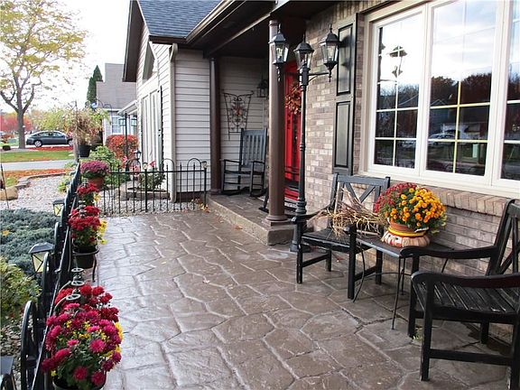 Relax & enjoy this spacious vinyl sided 3 bdrm, 2.5 bath Contemporary. Well lit living room features dual sky lights & gas fireplace. Formal dining room, eat-in kitchen with granite counter tops, french doors to 3 season room w/gas fireplace & sliding door to private fenced back yard with 3 level deck. Patio area & 2 sheds.
