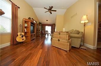 Charming cottage style home with great curb appeal. Enter the front door and you are welcomed home by beautiful Brazilian tiger wood floors which carry through foyer, dining room, kitchen and vaulted living room. Enjoy cooking in the updated kitchen with 42? custom cabinets, granite counters and stainless steel appliances. Entertain your guests in the adjoining dining room or move the BBQ outside on the 18 x 12 deck. Master suite has sitting area perfect for relaxing with a good book. Second bedroom is serviced by hall bath. Lower level has plenty of storage space and a walk-out to the level backyard with a large patio. One car garage; tilt-in insulated windows. Homefield amenities: 2 swimming pools w/bathhouse, 2 park pavilions, 3 acre park with playground, basketball, soccer, fishing lake, walking trails. Just minutes from Hwy 70; you will not find an easier commute. Located close to shopping, entertainment and restaurants. Call today to enjoy your new home tomorrow!