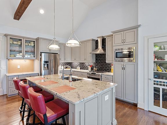 STUNNING custom built ranch in Averette Ridge! Do you need two first floor private offices? This home has them, PLUS 3 first floor bedrooms! Open floorplan, soaring ceilings with beautiful wood beams! Gorgeous chef's kitchen with custom cabinets, soft close doors and drawers. Upgraded appliances incl gas range and Bosch dishwasher, travertine backsplash, granite counterops, walk in pantry. 3 bedrooms (dual master, both with beautiful spa bathrooms!) down, plus another bedroom, full bath, and bonus room up! Extensive moldings and trim, energy efficient Andersen windows, tankless water heater, site finished hardwoods, Trex decking. Finishable 2nd floor space, real stone veneer, solid core doors in bedrooms/baths, Kohler bathroom fixtures, oversized 2 car garage, central vac, surge protected HVAC, closets with solid wood shelving. Irrigation and landscape lighting, fenced flat yard! Don't miss the community pool and clubhouse!