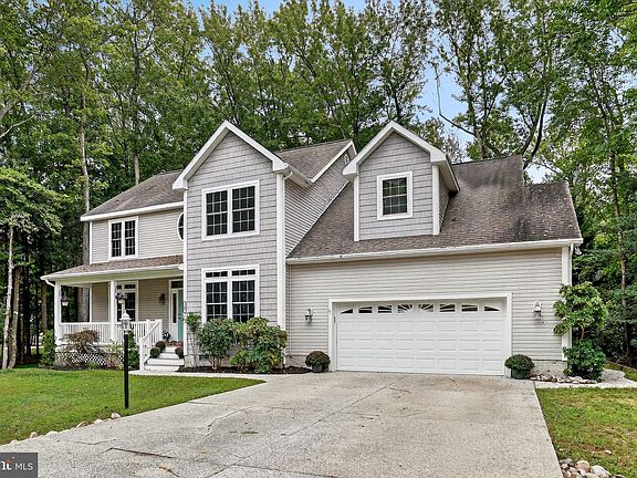 Located in Whitetail Sanctuary, a beautiful 100+ acre neighborhood nestled in the amenity enriched community of Ocean Pines. The Sanctuary has over 50 acres of open space with just 64 homesites. The neighborhood is quiet, peaceful and is ideal for long walks with your person or pet. Wildlife abounds. This delightful home is situated on a 1/3 of an acre that is easily managed with minimal care. The exterior of the home is maintenance free and has both a covered front porch and spacious rear deck. In addition, there is plenty of space to park your car with additional guest parking on the concrete driveway. As you enter the home you will notice solid hardwood floors throughout most of the first floor. This custom-built home has a nice circular flow with an open kitchen living room concept. The home was designed for first floor living only if desired or can expand for the whole family with 2 additional bedrooms, another ensuite and large bonus room upstairs. The first floor has an oversized laundry room, spacious office, dining area, eat up kitchen bar, eat in kitchen nook overlooking the deck and back yard, built in reading area, built in display and storage, cozy living room with a wood burning fireplace that can easily be converted to gas, oversized owner suite and bathroom. There is plenty of convenient storage throughout the home including a fully finished oversized two car garage. This 4 bedroom - 3.5 bath home will not disappoint and is being offered at a very reasonable price.