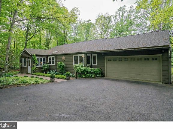 This Luther Nash built home, known for it's superior construction is a sweet find in today's market as well as a rare piece of architectural history. Enter into the den with slate flooring and view the great room through a unique, large plate-glass window. The kitchen with it's soap stone counters and custom cabinetry boasts an entire wall of pantry cabinets, allowing for plenty of storage. The open concept of the living/dining room features unique built-ins and a large, stone, wood-burning fireplace. Divided into separate wings, the master bedroom features a stone wall, a typical architectural detail of Luther Nash homes, while the other 3 bedrooms reside on the opposite wing of this rancher adding privacy as well as functionality. Enter the outdoors through the great room onto the slate floored, covered patio which has a stone fireplace/grill for entertaining. Stone steps lead to a fenced-in pool and cottage-like shed. This quaint home is nestled in the trees of 1.58 beautifully landscaped acres. Great location within walking distance to Fanny Chapman Pool and Historic Doylestown Borough and a quick jump to the 202 Parkway. The lane connects to Dogwood Lane which is in Cherry Lane Acres development. Award Winning Central Bucks School District. Make this unique home yours today!