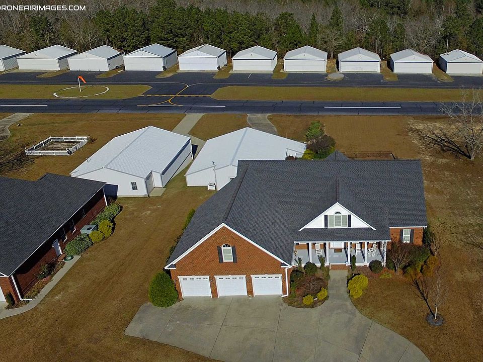 Stunning aviation property 3800 sf, 3 bdm (4th/Bonus) 3 bath Brick Home & 2025sf finished Hangar now looking for new owner! First time this honey has been available since custom designed in 2007. Smart utilization of space, massive storage, and all the details you love: Hardwood flooring, Arched entry ways, Open concept kitchen w/double ovens, Granite, Stainless appliances, and Master on main. Step out for morning coffee on the all season 40X16 enclosed back porch to watch the planes. Hard day at work?...relax in your sauna shower w/multiple shower head options w/tied in exhaust. Travertine tile, his/her vanities, and split bdrm layout make it so easy to love! Plenty of rm for guests up in bonus w/balcony, wet bar.At the ready for you!