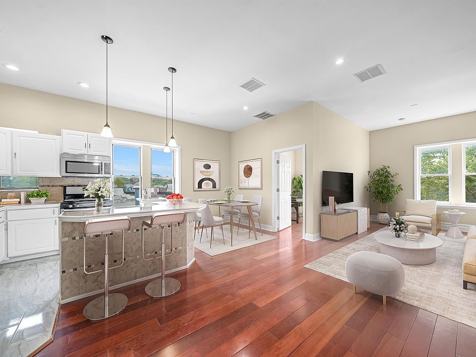 Tiled kitchenHardwood floorsDirect rooftop accessFlexible layoutAmple counter spaceGenerous cabinetryStainless steel appliances