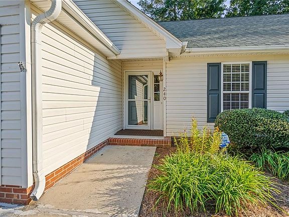 Welcome to this charming one level home featuring fresh paint throughout and brand-new carpet in the bedrooms. The inviting living room offers vaulted ceilings that create an open and airy feel. The kitchen is sure to impress with granite countertops and stainless steel appliances. The washer, dryer, and refrigerator all convey for added convenience. Major systems including the roof, water heater, and HVAC are approximately 7-8 years old, offering peace of mind. Outside, enjoy the peaceful setting complete with a terraced garden area—perfect for flowers, relaxing, or simply enjoying nature. An attached 2-car garage provides convenience and extra storage. This home combines comfort, style, and functionality making it a must-see! The location makes both Clemmons and Winston Salem easily accessible.