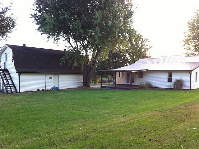 Many updates made to this home. New metal roof. New laminate & carpet throughout. New paint throughout. New stove & fridge. 3 bedrooms and 1 bath home - beautiful brick fireplace with built in bookshelves. 2 car detached garage with 2 rooms &n a 1/2 bath above it.