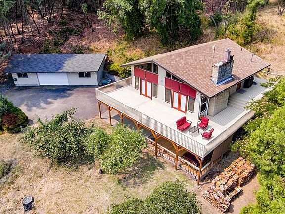 Amazing views! Relax and enjoy the setting from the wrap around deck and beautiful move in ready home. Situated on 2 private acres in the desirable Garden Valley area with paved drive. Spacious living with high open beam ceilings, neutral colors, and lots of windows. Darling kitchen with island and breakfast bar. Wooded acreage, lawn, and fruit trees. Oversized, detached, 2 car garage/shop. RV parking. Septic just pumped and inspected.