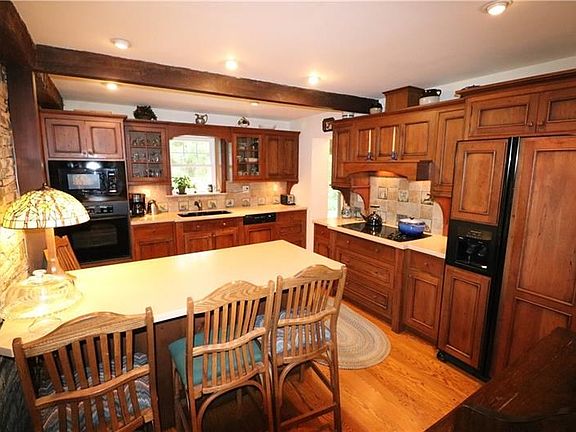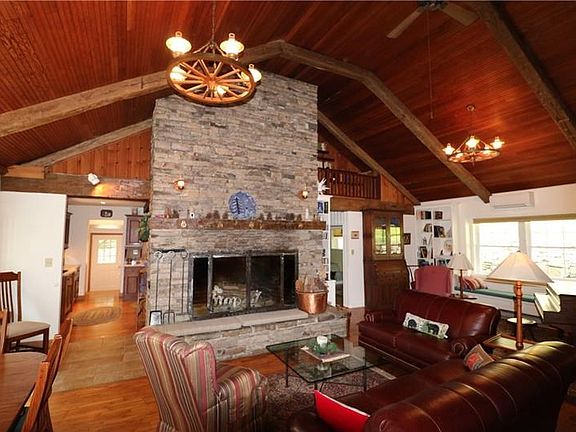 Beautiful Mountain Home on park-like setting, just off of 7 Springs Resort. Whether you are looking for a rustic retreat or making a permanent move to the Laurel Highlands, you will find this unique home intriguing. Hand-hewn exposed logs to a massive fieldstone fireplace with a built in charcoal grill are truly amazing. The recently remodeled kitchen with custom cabinetry, Corian countertops and windowsill, along with all new appliances will be sufficient for any cook. Various features of this log home include built ins, cathedral wood ceilings, lofts, professionally landscaped with fieldstone walls, deck with canopy of trees, hot tub and an addition that includes a family room. The country style, master bedroom has a private bathroom and access to the deck. 2 Car garage makes a great place for your cars and toys. This meticulous home has so much to offer and character galore.