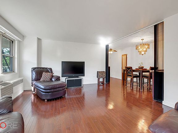 Wonderfully spacious, this two-bedroom, one-bath condo has a huge concrete 126 SF balcony! The recently updated bath and kitchen have stainless steel appliances, granite countertops, and a separate dining area. The bedrooms are large with plenty of closet space. Additional features include hardwood floors throughout the living and dining rooms and large windows that allow for plenty of natural light from the tree-lined street. Building amenities include two elevators, a laundry room, a children's play area, private security, and community areas.