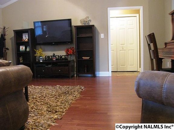 3BR, 2Bath home in great new neighborhood in Priceville. Open floor plan, hardwood in great room, full brick with 2 car garage. Wonderful warn colors in Family Room and Kitchen. Plantation Blinds through out, Privacy Fence, Sod in front and back yard, New pool with salt water system, polaris cleaning system, solar and saftey cover, swim-out area with jetted seats. Cul-De-Sac