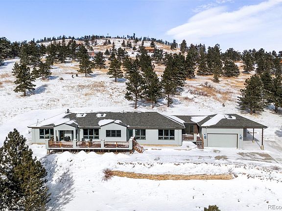 Endless mountain views envelop the entirety of this remodeled Gold Run ranch home. Dotted w/ verdant pine trees, this 4-acre property presents a setting steeped in serenity w/ incredible views directly into downtown Boulder. A sprawling front deck invites entry into an open floorplan radiating w/ luxurious details including walls and ceilings by American Clay. Beautiful wood flooring flows underfoot as eyes are drawn upward to vaulted ceilings w/ skylights and designer light fixtures. Warmth emanates from a fireplace anchoring a spacious living area. A chef’s dream kitchen is impressive w/ Blue Marine leathered quartzite countertops and upgraded appliances including a Bosche refrigerator, Monogram oven and Thermador stove. Adorned w/ mural wallpaper, the primary suite boasts a spa-like bath. A flex room w/ vast windows flaunts outdoor connectivity. Upgrades include a new roof, a regraded driveway and a Nest thermostat. This home is ideally located in proximity to Gold Hill and Boulder.