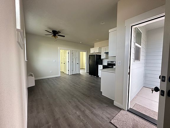 This brand-new home, is move-in ready!The charming residence offers a cozy and inviting atmosphere with two well-sized bedrooms and an open-concept kitchen, ideal for both everyday living and entertaining. Situated in a tranquil neighborhood, it provides a peaceful retreat from the hustle and bustle of city life. For your convenience, the home includes in-unit laundry hookups, making chores simpler and more efficient. Additionally, it is equipped with air conditioning to ensure a comfortable living environment throughout the year. This combination of modern amenities and a serene setting makes it a perfect place to call home. Renter responsible for all utilities, Water/sewer billed back at $80/month Detached two card tandem garage/storage available for $200/month