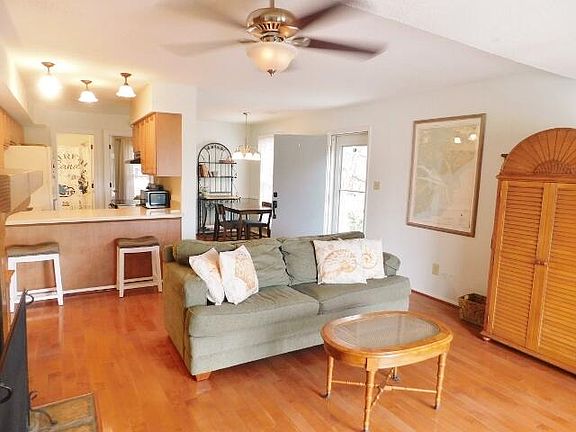Spacious first floor one bedroom Driftwood Villa in a premium location. This is an end unit with just a few steps to the door! Enjoy lagoon and golf views with spectacular sunsets from your deck. There is a storage closet on the deck for all of your beach gear. The villa features a large great room with adjacent kitchen and laundry. There are hardwood floors throughout the villa. The kitchen has been updated with new cabinets and corian counter tops with a bar for stools. Enjoy a fireplace on chilly winter evenings. The bedroom has a walk in closet and the bath has been updated with a new vanity, flooring and shower stall. The property is being sold furnished and ready for you to enjoy this Spring, Summer and Fall! The perfect Edisto second home or rental property.