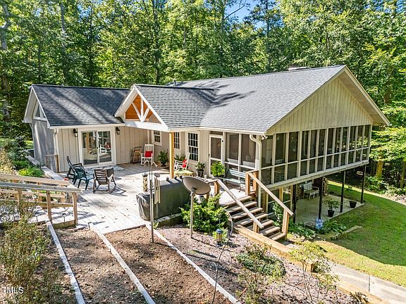 PRIVATE 3 bed 3 bath home tucked away among the trees. Thoughtfully renovated for both space and comfort. This property is an outdoorsmans paradise. Perfect for fishing, kayaking, and gardening. Property also includes detached workshop and small barn. . Please see attached list of improvements. Easy commute to Roxboro, Durham and Danville. ABNB and VRBO allowed.