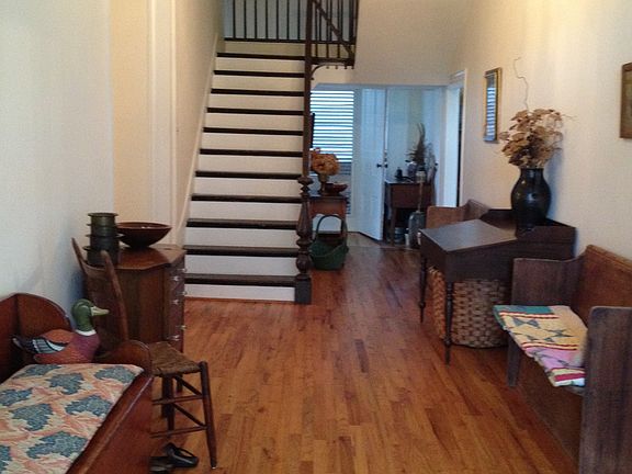 This historic Greek Revival 3+ bedroom, 2 bath home is located on a 4+ acres. 11 ft. ceilings throughout. Refinished oak and original heart pine floors. Original fireplace mantles. Sun-filled modern county kitchen with wrap around granite countertops, updated cabinets and new sink & appliances. Master bath with walk-in tile shower. Fancy second bathroom with claw foot bath tub. Large laundryroom with lots of storage. Separate screened in party house/gym with metal roof. Shaded, screened-in side porch perfect for relaxing. Enormous finished, walk in attic room with as much storage as you will ever need. Basement has workbenches, power, water, lighting, and ventilation system. House is sitting on a granite and fieldstone foundation and steps with basket weave brick walkway. Exterior of the house has operational shutters with hold backs. Porches and patios overlook a romanticly landscaped 4 acre lot with fenced in English style flower garden as your front yard. Amazing vegetable garden with granite block raised beds and deer fencing. Orchard with Oak, Pecan, Apple, Pear trees and Blueberry and Blackberry bushes. Also, has a 8,000 gallon rainwater cistern piped to garden area.