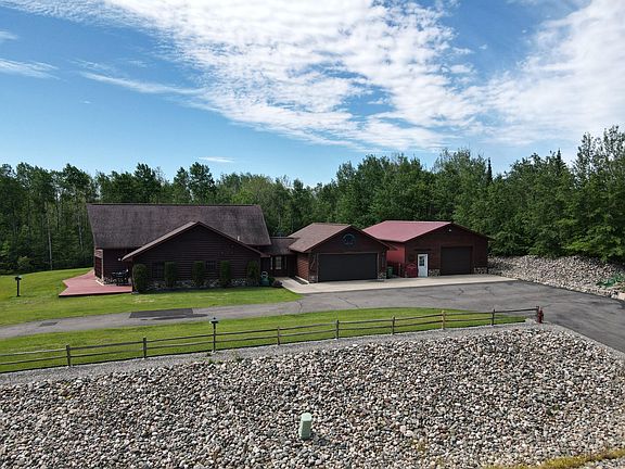 Welcome to Nashwauk's newest addition where you'll find a stunning executive-style, slab-on-grade home set on a professionally landscaped 1.5-acre lot with hilltop views and added privacy. This 4-bed, 2-bath home is sure to impress with its massive living space, vaulted ceiling, and custom-built centerpiece fireplace. The hickory-style kitchen with bar top counter opens to the formal dining area. The spacious en suite features a Jacuzzi tub, custom walk-in shower, and infrared sauna. The loft-style bedroom/office overlooks the main living area. Storage won't be an issue with an attached heated 24x32 garage & a 30x40 Morton-style garage with additional space. You must see this one-of-a-kind property to appreciate its beauty. Don't miss the opportunity to make it yours. Schedule a showing today!