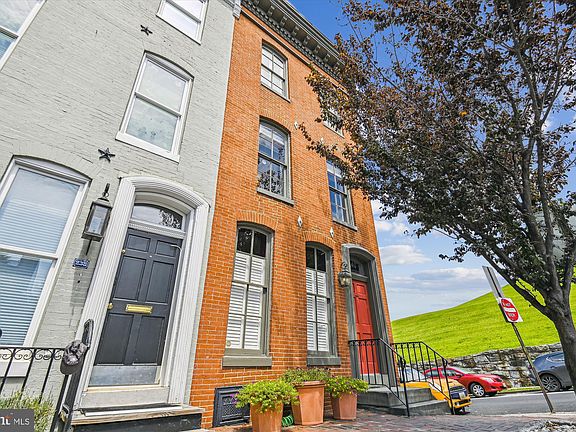 Price reduction. Stop by our Open House on Saturday, 12/9, from 12-1:30pm. Ideally situated on the corner of Battery Avenue and Montgomery Street, directly across from Federal Hill Park, this custom-designed property mixes old with new and offers spectacular views from every level. Step into a dramatic octagonal foyer from the Battery Avenue entrance, then right into a newer renovated kitchen by Patrick Sutton Interiors, with the Inner Harbor as the backdrop. Custom wood cabinetry, marble countertops, and high-end appliances make this a cook's dream. The banquette eating space makes a perfect setting for daily eating as well as entertaining. A left turn through the front door takes you into the warm dining room with original wood floors, & built-ins. On the second level, you’ll find two sizeable bedrooms, one with the same beautiful views of the harbor and city skyline. This floor also includes a high-end hall bath and a laundry area. Continue up one more flight to find the primary bedroom with an en-suite bath and walk-in closet. The family room is housed on this level as well. A bright, open space with a wood burning fireplace, wet bar, and deck with more spectacular views. The lower level doesn’t disappoint with its built-ins for an ideal office or recreational space, with a kitchenette and full bath included. This area walks out to a landscaped garden and patio. This space could be converted into a parking pad from the gated alley. High-end finishes, lighting, and built-in storage in just about every room make this home a functional showstopper!