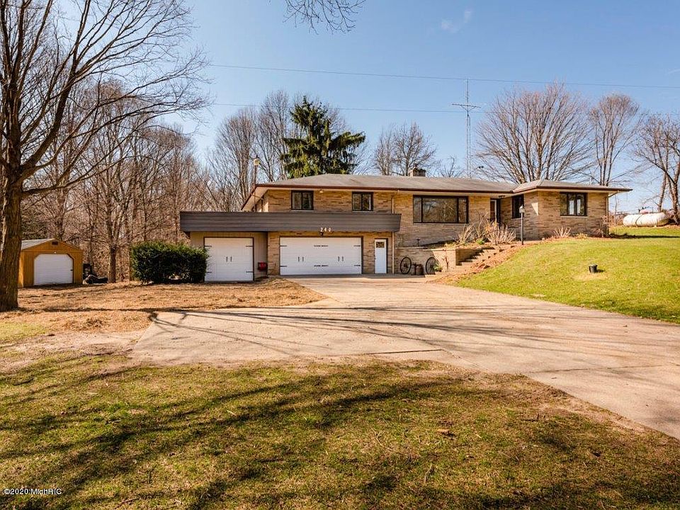 Exceptional home, setting & value! 4 bd, 3 bath, brick raised ranch w/ attached 3 car garage located on a prime 2 acre ravine site! Walk-out lower lvl leads to private dream setting! Many upgrades! Large living rm w/ wooded view has pocket doors to 17 ft dining rm w/ great view & open to kitchen w/ raised panel hardwood cabinets, lots counter space, stainless steel appliances, tile back-splash & access to a large covered patio you'll love! Main floor features 4 bedrms, 2 full baths recently updated, & access to sun-deck! Lower lvl w/updated bath w/tiled shower, 27 ft family rm w/ fireplace & glass doors to relaxing patio & stairs to upper lvl fire-pit area wrapped in fencing. Also: whole house generator, High eff-80 gal hybrid water heater, 20x14 out-building, 200 amp service.