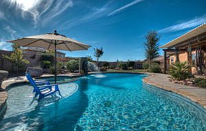 Beautiful home with it's own backyard oasis, complete with pool, spa & outdoor shower. 4 bedrooms + den, 4 bath, 3 car garage. Garage is heated and cooled! Casita with separate entrance, upgraded kitchen, ss appliances, instant hot water, dual heating/cooling systems.