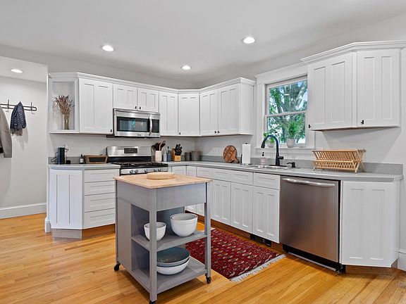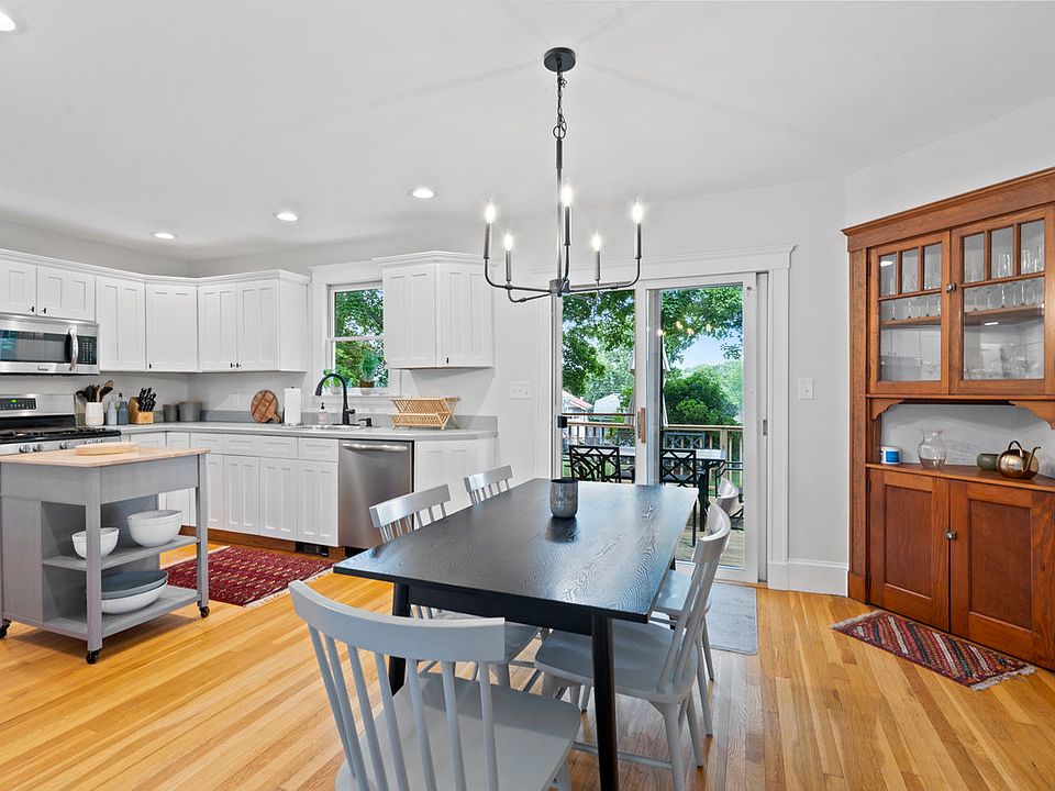 Custom cabinetrySliding glass doorsUpdated eat-in kitchenLarge wooden deckPaved drivewayMbta commuterRed line
