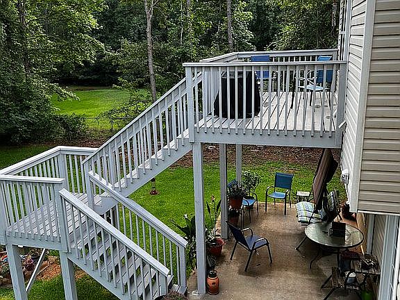 2022 New front stone steps , new awnings over both decks, one retractable, new sink is n all baths, new decks, new air conditioner and heat pump. Basement has bedroom, full bath, den, and office . 3 bedrooms and 2 ba upstairs, living room, dining room, kit and breakfast nook. Wood burning fireplace. Deck off master.