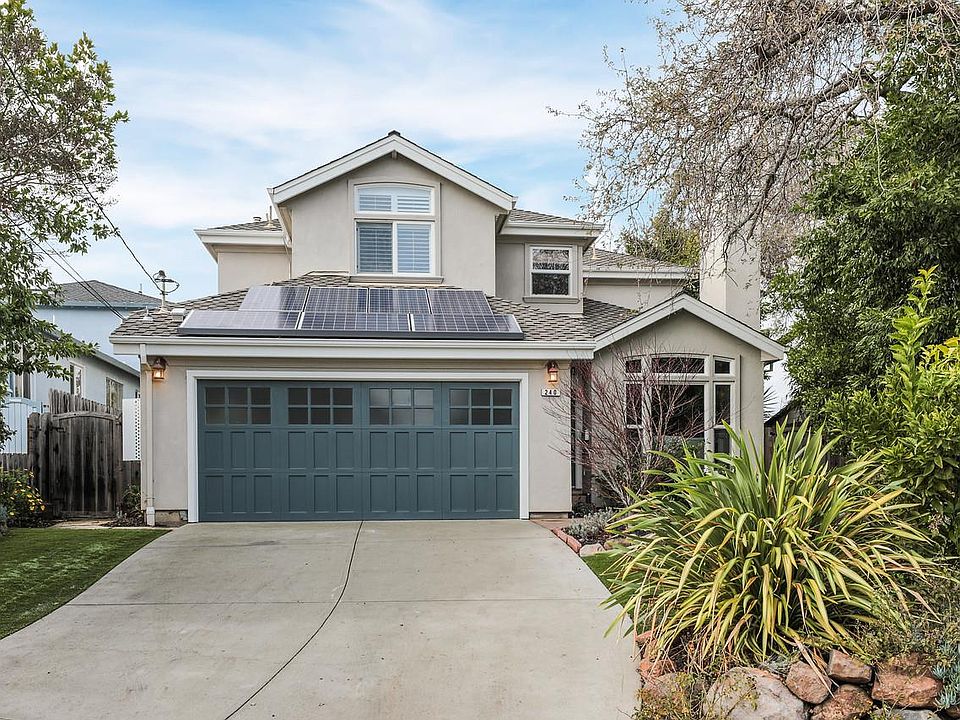 Updated throughout, this spacious 4 bedroom, 3 bath home offers high-pitched ceilings, designer wall colors, hardwood floors, and large windows that provide generous natural light.The large master suite includes 2 closets, dual sinks, and large soaking tub.The kitchen includes custom cabinetry, professional grade stainless steel appliances, and opens up to a family room with fireplace and access to the backyard that is an entertainers dream.A large well lit den with built in cabinets and pitched ceilings as well as access to the back yard is another great living area in this home.There is also an office space on the second story with built-in shelves. This homes versatile floor plan is full of wonderful extras.Close to major commute routes, downtown San Carlos and centrally located between Silicon Valley and San Francisco the location is ideal.EXTRAS: Solar; Air conditioning on the upper-level;Raised vegetable garden; dog run; hot tub and outdoor fire pit. FIRST OPEN HOUSE SAT/SUN 2-4!