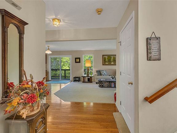 Stand up home in the Beaver Woods Community. One owner/no smoking/no pets. Enjoy the view of nature from your back yard. A rare just over an acre lot with freshly coated blacktop drive (2021) to 2 car integral garage in back. Enjoy the spacious open concept as you enter and notice the gleaming hardwood floors with dedicated dining room showcasing the abundant light from the bow windows/family room off main living area. Living room i soff the kitchen and features a stone white gas fireplace. Step out onto the 18x8 back deck for grilling and enjoyment of the beautiful weather. The owner's suite is expansive with vaulted ceiling, separate full bath and walk-in closet. Two more bedrooms with 2nd full bath are located on upper level as well. Walk out half basement lends to ease of back yard fun. New roof (2019)-(HVAC- 2020/ front door - 2021/ fridge-2021). Enjoy this neighborhood community just minutes from shopping, all major routes and downtown Beaver streetscape.