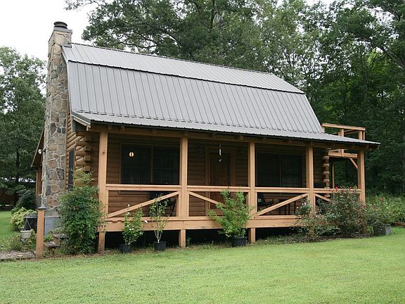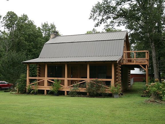 Sit on the front porch and enjoy this lovely piece of nature. Low maintenance with this log style home ready for your peaceful enjoyment. Home comes with 3.04 acres, detached double carport, large barn with new metal roof, fenced back yard, covered back porch, large stone fireplace in living room and upper deck. Flooring is large pine flooring, log exterior and wood interior. Large sunroom could easily be converted to additional bedroom. Building with air conditioner unit does not remain with the property.
