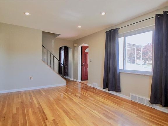 Rare home in Pittsburgh with level entry from street, minimal steps into front door and full bath and bedroom on the main floor. There is a lot more living space than meets the eye from the outside and includes features such as an eat in kitchen (in addition to a dining room), 2 full baths and a huge finished game room in the basement with a gas fireplace. Original hardwood floors flow throughout the first floor and stairs to second level. Many of the rooms have been repainted and several upgrades have been made such as new light fixtures, carpeting and more. Integral garage in the city cant be beat and there is additional storage in the shed located in the fenced in backyard. Close to parks, dining, shops, public transportation and of course beautiful views of Pittsburgh's skyline that the neighborhood is known for.
