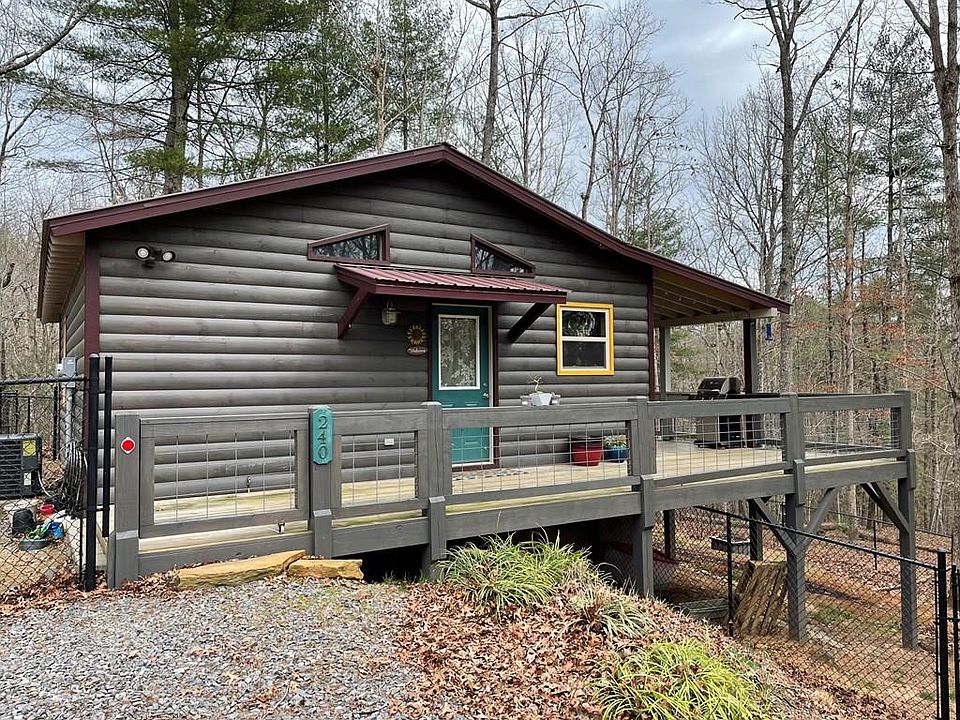 Enjoy high ceilings in every room, granite kitchen counters and a large walk in shower. Large walk-in closet with laundry room makes doing laundry a breeze! Fiber optic internet in this home is a rare find allowing you to enjoy speeds of the city in the tranquility of the mountains. The wrap around, covered, deck creates a perfect spot to relax. Extra outdoor outlets conveniently located around the deck make outdoor work, or Christmas lights a breeze. Decking has also been reinforced, and rough wired, for a hot-tub! Large fence yard for all your fur babies! Relax to the sounds of nature and leave all your cares behind. Looking to invest? Great rental property with history. Call now!