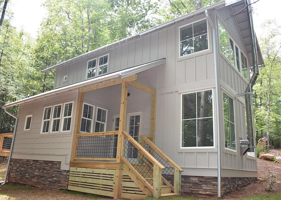 Brand New Home built with modern day architectural design that could be described as a Mini Home on steroids. In new up and Coming development in Burningtown area of Franklin. One Bedroom one Bath with all High End Appliances. Tiled Baths with 2x6 tongue and grooved Pine Flooring though out the home. Laundry Room. Refrigerator, Microwave, Dishwasher, Washer/Dryer, Vermont Cast Wood Stove . Bosh Mini Split Heating/Air. Crawl space nicely encapsulated with Dehumidifier. Custom made Gutter system Nicely Landscaped with patio pavers with fire pit. circle Gravel Drive. A must see to appreciate. Next Door a 2/2 New Home Very Unique construction available also. Addition land Available. Lots of opportunities. High Speed Fiber Internet is in the making.
