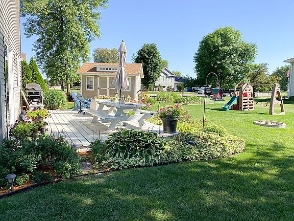 Two story slab on grade, 2 stall garage with storage trusses, insulated, lined and heated. 22.5 x 22 foot maintenance free deck off of dining area. Beautifully landscaped corner city lot. Custom built 10 x 14 foot shed. Kitchen includes brand new stainless steel Maytag appliances, subway tile backsplash and granite countertops with a white Kohler sink.