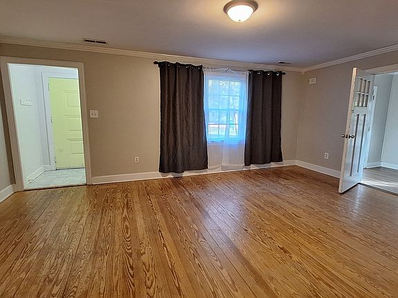 ALL GREAT BRIDGE SCHOOLS and a very large yard. This 4 bedroom ranch has a bonus room on the side with separate exterior entrance and LVP flooring. Heart of pine wood floors in the living room and two bedrooms separated by a full bath on the hall toward the back of the house, an additional bedroom on the front of the house past the kitchen and dining room, and at the end of that hallway, the master bedroom with walk-in custom closet and private bath as well as an exterior entrance to the back deck.