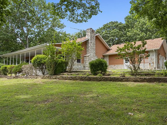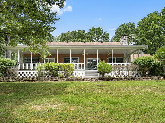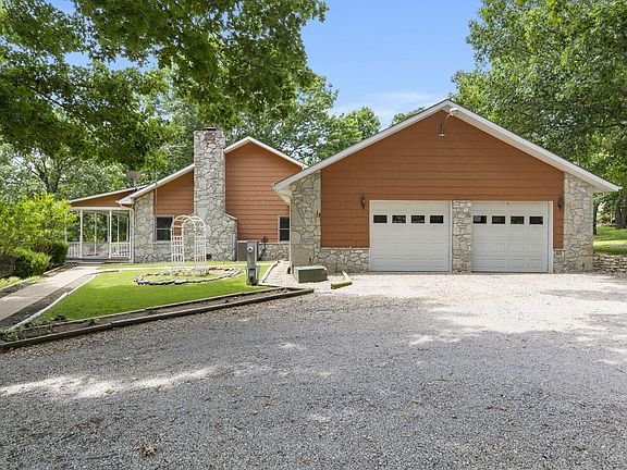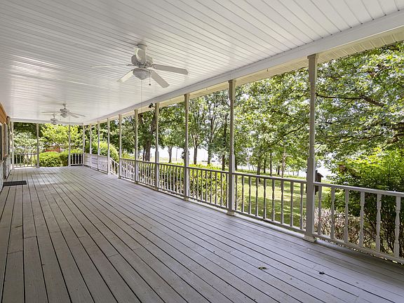 A private waterfront retreat on Table Rock Lake including a 2700 sq' home on 1.74 acres with a 24x36 shop for boat/ RV storage and an available 10x24 boat slip!! The shoreline is gentle and close to the home for viewing and access. Located conveniently close to Hwy 86 that's just minutes from Branson and closer yet to Big Cedar Lodge, Top of the Rock and Long Creek Marina. The home offers a wide open floorplan with high volume ceilings, an oversize primary suite and plenty of bathrooms for lake guest convenience. Large kitchen with stainless appliances and plenty of counter seating. A full side length covered deck/ porch faces the water and views the cove and out to main channel. The available boat slip (additional $55,000) is a short distance from the home and the dock swim deck is in ideal viewing range of firework displays for both Top of the Rock and Big Cedar. Parking for guests is no issue with an oval drive and extra parking pad.