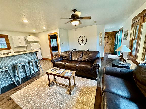 This cozy lodge is perfectly located in Grand Lake with amazing views of the Rocky Mountains. With close proximity to scenic trails, rapids and the main shopping and dining street, enjoy your nature getaway in this pet-friendly home (additional $50 pet fee per month applies) with a comfortable bed, a full kitchen and bathroom plus free Wi-Fi and parking.