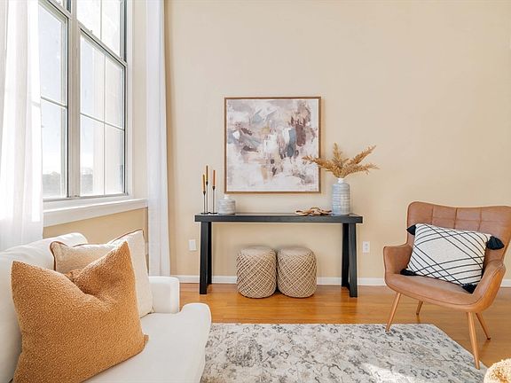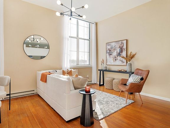 Situated in Jamaica Plain’s Hyde Sq, this Jefferson School House penthouse condo offers historic charm with modern updates over 3 levels of living. The first level features a lofty living room with 12ft ceilings that welcomes an abundance of natural light from over-sized windows, an eat-in kitchen with new stainless steel appliances and modern touches, and an updated half bathroom. The second level features the spacious primary and second bedrooms, both with ample closet space, as well as an updated full bathroom with a new vanity, mirror, and lighting. Additionally, there's a generous area perfect for an office or den, along with a large closet that houses the in-unit laundry. The stairs to the third level lead to a small sun-soaked room that would make a perfect workout or meditation space. There are hardwood floors throughout, one deeded parking space & easy access to the Rt. 9, Longwood Area, Northeastern University, green line Heath St. station and local buses. See this gem today