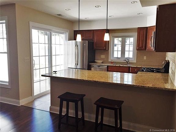 Newly constructed 55+ Adult-Community. This small complex is just two short blocks to the town center, shopping, banking, restaurants, etc. Very spacious 2 bedroom 1 1/2 bath townhouse with walk up attic perfect for plenty of storage and with a detached garage. Sun-filled kitchen with granite counters, tile backsplash, stainless steel appliances, breakfast bar, and sliders to private patio area. Dining area, large living room and half bath complete the main level. Both bedrooms are spacious with hardwood flooring and plenty of closet space. The full bath has custom tile and large granite vanity. You'll find custom lights, ceiling fans, tile foyer, second floor laundry, and other upgrades throughout this beautiful condo. A convenient commute to New Haven hospitals, train station, colleges, East Haven Town Beach, as well as other shoreline communities.