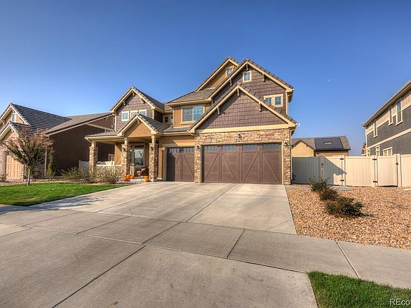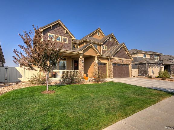 Erie Highlands Gem! Open floor plan with large main floor office/den. Large living area with gas fireplace, coffered ceiling detail and plantation shutters. The kitchen is a chef's dream with oversized island, stone details, stainless appliances with gas range and double oven. Huge pantry! 4 spacious bedrooms upstairs with a bonus loft. Mountain views from the second story!! Beautifully landscaped rear yard with relaxing deck overlooking a custom stamped concrete patio with pergola complete with power for lights or TV. Perfect backyard for relaxing or entertaining! Impeccable condition! This home shows like new! Enjoy the neighborhood pool, clubhouse and gym. New K-5 school coming in 2021!