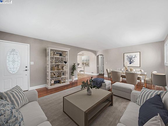 BUYERS' ADVANTAGE... PRICE REDUCED. Tastefully updated 4 bedroom, single-story Livermore home with open & spacious floorplan. Remodeled kitchen, w/ custom cabinetry, stainless steel appliances, solid countertops. Both bathrooms remodeled. Dual pane windows, air-conditioning, ceiling fans. Family room with French doors leading to rear wood deck. Gleaming original hardwood flooring in huge living room, hallway, and all 4 bedrooms. Freshly painted inside and out. Newer roof. Rear yard with large tool shed, terraced garden area. Finished garage with epoxy floor.