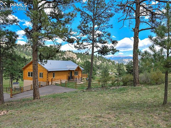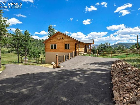 This is the one you've been waiting for! Beautiful Log home, very nicely appointed, in High Chateau Ranches on 2.3 acres of pine trees and meadows. Fantastic Pikes Peak views nestled in a valley chock full of rock formations to spend your day in the peace and quite. This home is loaded with upgrades with a 20x30 heated garage. Armstrong vinyl luxury plank floors throughout, Milgard Windows and doors that are pressure treated with nitrogen between the panels, brand new Goodman gas-fired 120,000 BTU Furnace, Brand new pressure tank with a warranty, Nero Clear water softening system, Wiseway steel pellet stove in the basement, Heat and glow stone gas fireplace in the living room, 500 gallon propane tank, Rheem 45 gallon water heater. The kitchen has custom cabinetry by Kulin Studios of Woodland Park. All cabinets are soft close and the counter tops are granite throughout the home. LG Black stainless steel appliances and a huge island with stone decor. There is also a large pantry for all you dry goods. The master is adjoined by a 5 peace bathroom with a glass shower and a large soaking tub. A separate water closet and double vanity as well. There is a large walk in closet in the master and an extra room to use as an office or whatever else you may need. Down stairs is a large walk out family room with 9 foot ceiling and huge windows so the Pikes Peak view can be enjoyed from down there as well. There are also two bedrooms and a large laundry room on this level. The family room has a unique pellet stove which is a conversation peace by itself. On the outside the perimeter of the house is fenced with many mitigated pine trees, an asphalt driveway, cedar retaining walls, and a storage shed. A large deck off the upstairs living room with a new retractable awning and amazing views of the valley, rock formations, mount Pisca, and Pikes Peak expands your living and enjoyment space. Come and make this your Colorado Dream come true!