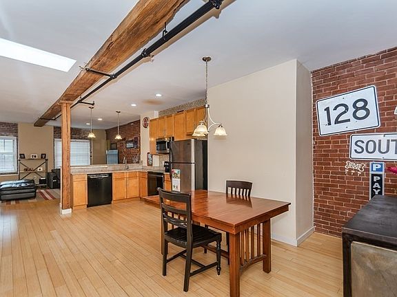 Buyer financing fell through!!! Stunning revitalized mill-style loft located next door to the desirable Mill No. 5 this magnificent two level loft is located on the top floor! Enter through the dining area to find beautiful exposed brick. Enjoy the open concept kitchen complete with a breakfast bar, granite countertops a new dishwasher and sleek stainless steel appliances. An expansive living area with gorgeous hardwood flooring that carries throughout the top floor, exposed wooden beams, rustic brick and city views! A half bath and washer/dryer complete the main level. Travel downstairs to find the stunning master suite that boasts wood beamed ceilings, exposed brick, large windows, large closet with custom organizers and a master bathroom. This unit is in the heart of an urban oasis, connected to Mill No. 5 with retail, restaurants and a theater! Only minutes from hot new restaurants, galleries, museums, parks, walk/jog trails, commuter rail and Rt. 3 and Rt. 495.