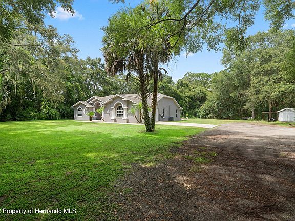 Active Under Contract – Accepting Back Up Offers. Act fast: this impeccably well-maintained, 3 bedroom/2 bathroom home, situated on 5, expansive acres (with 5 adjacent acres being sold next door), might just be the dream home you've been looking for! An open floor plan and just under 2,000 sq. feet gives this storybook home its spacious feel and makes it the ideal space for hosting gatherings or for large families. Home is coming with numerous upgrades including: 5 MONTH old roof, brand new interior/exterior paint, freshly painted lanai with new lighting, upgraded lights throughout the kitchen, and new smoke detectors. Bathroom was renovated 5 years ago, new flooring/new appliances were installed at the same time. Guests can soak up the Florida sun from the massive, screened in, back lanai, take a dip in the oversized pool, or lounge in direct sunlight on the paved, outdoor patio! Enjoy picturesque views of this sizable property with tons of space to spread out and park as many RVs, trailers, 4-wheelers, and cars as you need. Home is away from the hustle and bustle of the city, yet only 5-10 minutes away from shopping, restaurants, doctors, and more. Come live the Florida lifestyle with natural springs, hiking/cycling trails, fishing, boating, and more all in your backyard or with take a quick, 40 minute drive down the Suncoast Parkway and enjoy all that Tampa/the Gulf Beaches have to offer. You don't want to miss out on your chance to preview this stunning property; schedule your showing today! *One or more photos have been digitally staged. Additionally, there is another 5 acres next door that could be sold with this 5 acres.