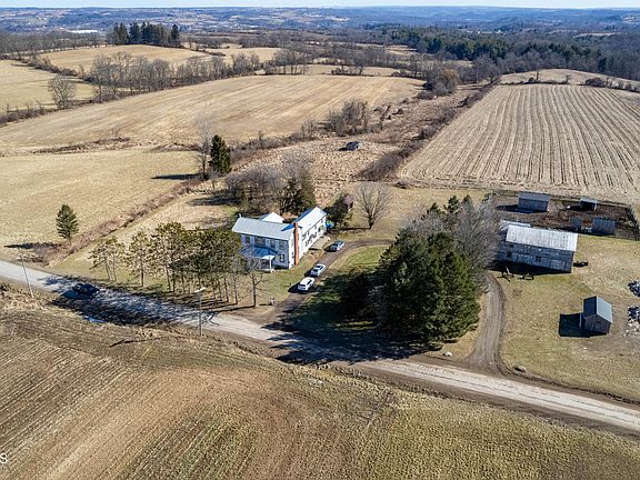 Escape to a scenic retreat on 174 acres of natural beauty! Land is certified organic. This 1800's Colonial home boasts unparalelled character and charm, offering a glimpse into the past while providing modern comfort. Enjoy breathtaking views from every angle with the sprawling landscape as your backdrop. The property features a large barn and several outbuildings, perfect for farming, hobbies or additional storage. Experience the tranquility of country living with this exceptional property. Home does need repairs but do not let that scare you. You can not build them like this anymore! Small shed on the right towards the road is excluded from sale.
