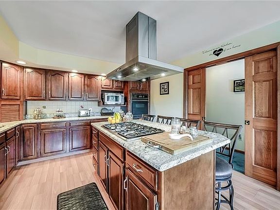 Gorgeous Ranch situated on four private acres! Beautiful stone and cedar home tucked away and surrounded by nature. Great room with vaulted ceiling, beautiful stone fireplace and open to kitchen and dining room, eat in kitchen has beautiful maple cabinets, granite tops, SS appliances and center island. Master with deck access to sit and enjoy your morning coffee and scenery, beautiful en suite master bath, three additional nice size bedrooms, two full baths, den and laundry room that complete the main level. Huge finished lower level with wet bar, full bath and fifth bedroom could make excellent in-law suite. An additional work shop completes the lower level. Large back deck with direct propane line for your grill,back patio, in ground 16x32 pool,three car attached garage plus a two car detached. Beautiful property that gives you seclusion yet in close proximity to shopping, dining and the interstate. ***Many Updates***