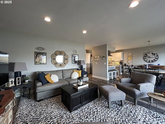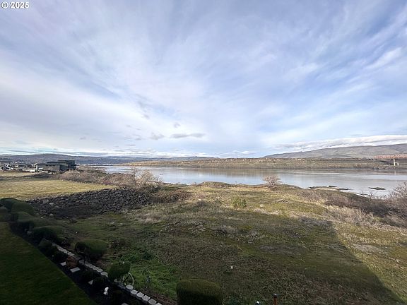 Take in breathtaking views of the River and WA hills in this beautifully maintained 2 bed, 2 bath top floor condo. This end unit has an updated kitchen with tile backsplash, quartz countertops, and range hood along with updated bathrooms and flooring. There is a small office space off the open floor plan living and dining area. Comfortably sized bedrooms with the primary bedroom having an attached bathroom and large walk-in closet. There is a detached garage that goes along with this unit making it the complete package for your home in The Dalles!