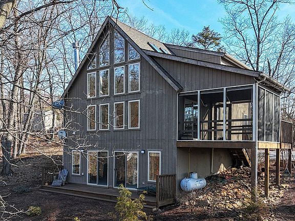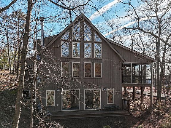The minute you walk into this lovely Chalet style single family home you will fall in love! Gorgeous 1.02 acre wooded lot with beautiful mountain views! Located on a cul-de-sac street for lots for privacy. Welcoming entry foyer with vaulted ceiling, recessed lighting and wood floor. Updated kitchen with tasteful contemporary wood cabinets, ceramic tiled back splash, breakfast bar with 2 pendants lights, recessed lighting and wood floor. The great room features a cozy gas fireplace, 3 exposed wood beams, fixed glass window wall, and cathedral ceilings. Sliding glass door in dining room that leads to the relaxing 12x12 screened in porch with access to the huge open deck with breathtaking views! You can also enjoy the 8x12 open deck for grilling. There are two guest bedrooms and full bath that completes the main level. Owners loft bedroom features vaulted ceilings/exposed wood beam, lots of windows/fixed glass, walk in closet and en suite bath with skylight, glass block window above the whirlpool tub, and ceramic tiled walk in shower with clear glass doors, The comfortable walk out finished basement includes a haft bath, laundry room, recreation/family room with recessed lighting, 2 windows and 2 sliding glass doors that lead to the open wood deck, unfinished storage room with workshop, great place to enjoy the outdoors with your family and friends. This well maintained home will not be on the market long! Most furniture will convey including dishes, pots, pans, etc.. Class A membership available with a $3150 initiation fee additional.