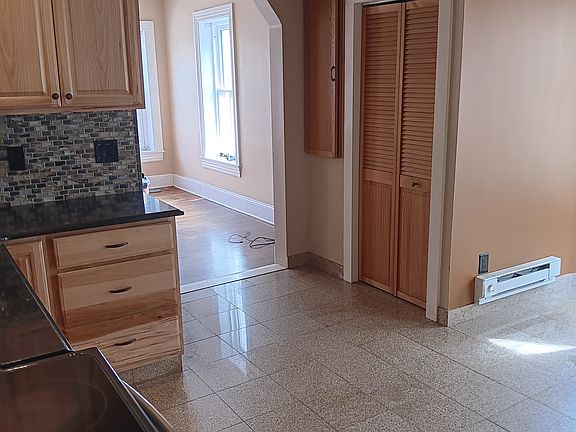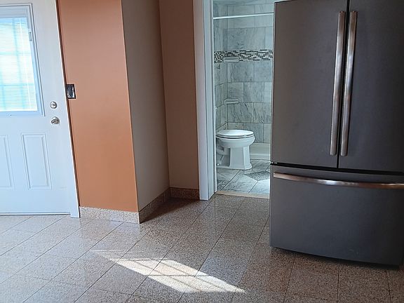 Kitchen (18'x9') has newer cabinets, tile floor. Bathroom is shower stall only, no tub.