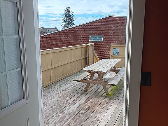 Small dog or cat is okay. The deck has stairs that go to a small private backyard.