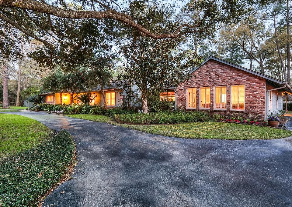 Amazing opportunity for a builder or end user. Beautiful ranch-style home with pool and sport court on an approx. 33,600 SF lot in Piney Point Village. Zoned to Memorial High School. Custom built-ins throughout, 42" solid wood cabinetry, wet bar, formal living and dining, French doors, bay windows, walk-in closets and en suite baths. West wing has separate guest quarters with bath and east wing has three bedrooms and two baths. Showcase windows in sunroom and den overlook covered patio, pool and landscaped yard.