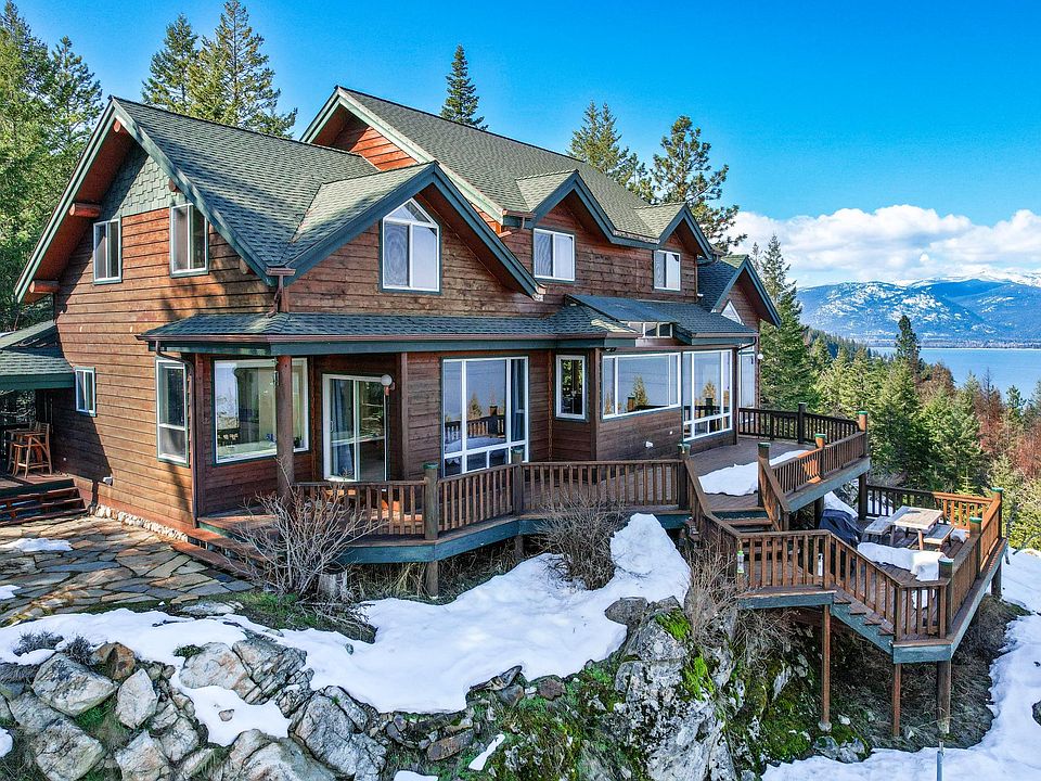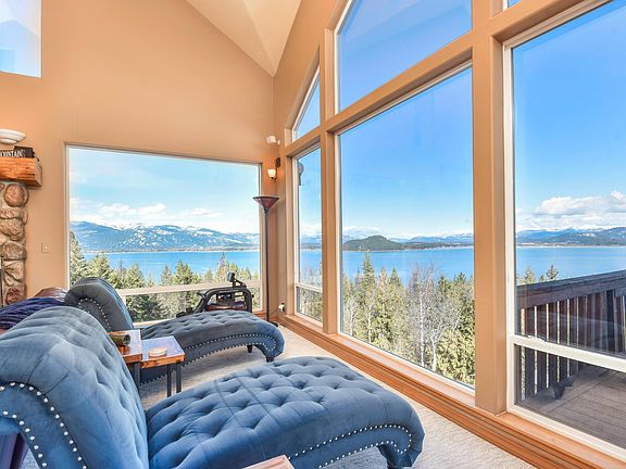 Enjoy some of the best views in Idaho and access to a private island from this fully furnished luxury home overlooking Lake Pend Oreille and surrounding mountain ranges. This four bedroom custom home offers complete privacy in a pristine natural setting on five wooded acres, 700 square feet of outdoor living space, a boat dock and water access on a stunning private island near Bottle Bay. The home is configured and furnished for maximum enjoyment in entertaining as well as productive remote work, with 4 bedrooms and 2.5 baths spread over 3500 square feet. The master suite has a king bed, walk-in closet, a jetted tub and walk-in shower. A separate 200 square foot office (not pictured) is located in the master suite, providing a completely separate and peaceful work space. The kitchen comes fully stocked with plates, glasses, flatware, cooking utensils and small appliances such as a blender, Insta-Pot, waffle maker and espresso coffee machine. Grilling and outdoor dining furniture are provided on the deck to soak in the amazing views. Upstairs guest rooms have a queen bed, two twin beds, and a triple bunk bed. Two upstairs bedrooms have WFH spaces. A 60 inch Smart TV is available in the upstairs living room. **Zillow uses a random phone number to route calls about this listing to us - we don't always catch these calls so please feel free to leave a voicemail or send a text/email to us. We will respond to all inquiries.** Lease available from 20 September 2025 to 30 May 2026 at advertised offseason rate - available at negotiated rate for high season over summer months (2025 or 2026). Renter pays utilities - owner pays association fee. Pets negotiable at additional fees depending on size and breed.